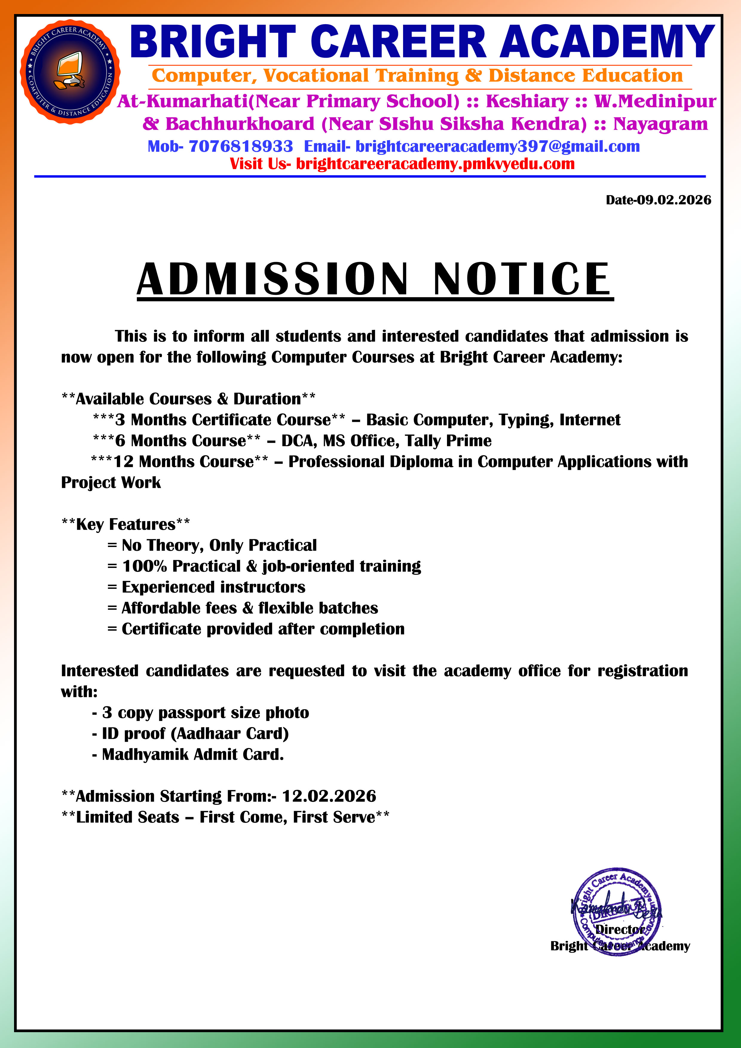 Download 09 Feb 2026NEW YEAR 2026 MEGA OFFER BRIGHT CAREER ACADEMY Computer Centre Admission Open 35% OFF on ANY C...